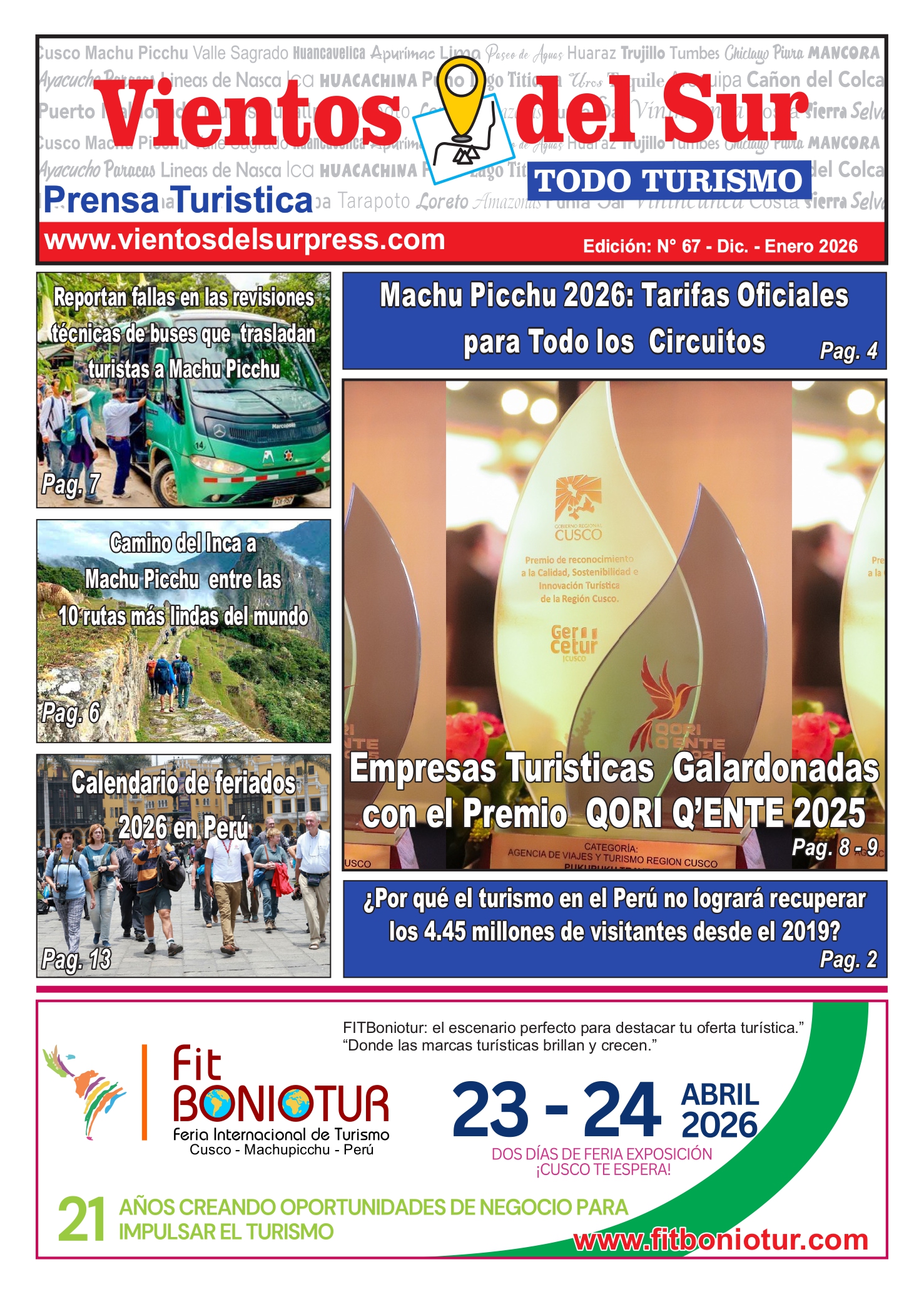 La Feria Internacional de Turismo FitBONIOTUR Cusco Perú, y el Periódico Turístico Vientos del Sur, Prensa Turística estarán presentes en la Feria Internacional de Turismo de Arequipa – AVIT 2025. Stand 68.